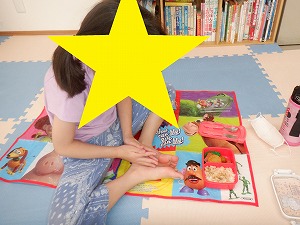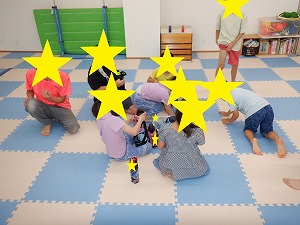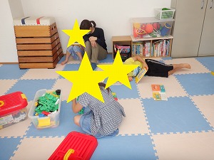 午後の自由遊びはニューブロックや絵本やバランスボールで遊びました。音楽に合わせて素敵なダンスを踊ってくれたお友達もいました。