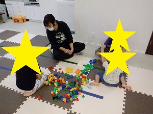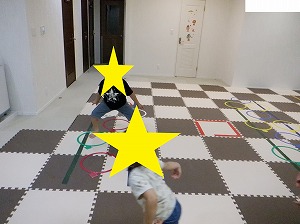 みんなが揃ったら、お片付けをして運動遊びの時間です。