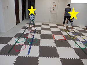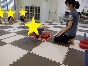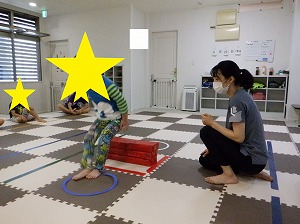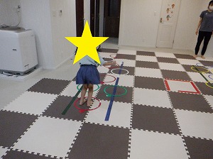フープをしっかりと見て、フープを踏まないように進めるかな?