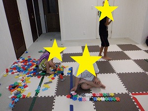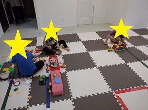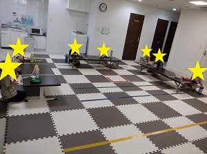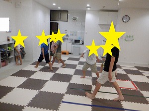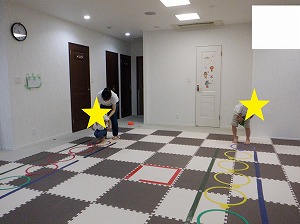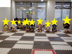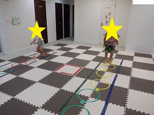 みんなが揃ったら、お片付けをして運動遊びの時間です。