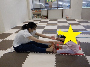 自分の足先を触ります。