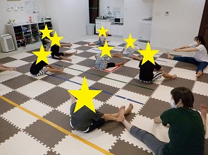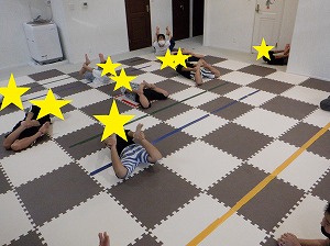 柔軟は、みんなで元気よく数を数えて