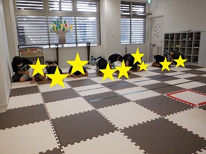 静の時間は、仰向けになり静かに過ごします。