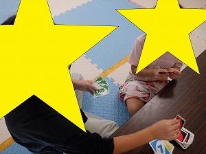 UNOのルールを遊びながら教え合ったり、レゴのパーツを上手に貸し借りしたり…