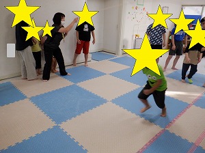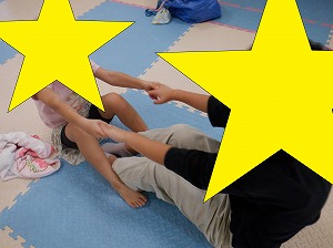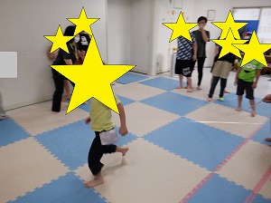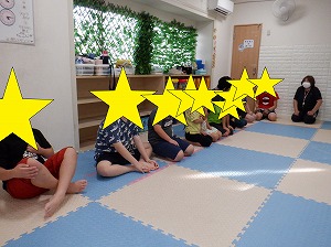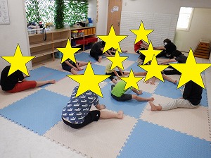 掛け声をあわせて、しっかり手足の柔軟をします☆