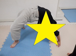 仰向けに寝そべったら、手足を基本固定して動かさず、そのまま床を押してお腹をあげると背中が反り、肘と膝が伸びて、綺麗な逆U字の形になります。頭を浮かして、手と手の間を見て姿勢を保ちましょう✨