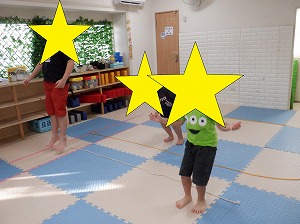 短い時間で情報を保持し、同時に処理する能力(ワーキングメモリー)を鍛えると共に、身体的能力(跳躍力・空間認知力・バランス感覚)を複合的に養う運動遊びです。