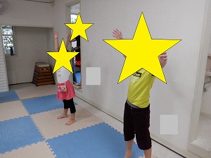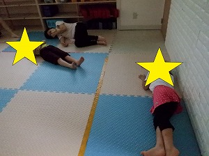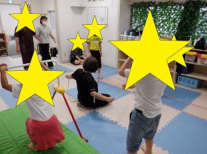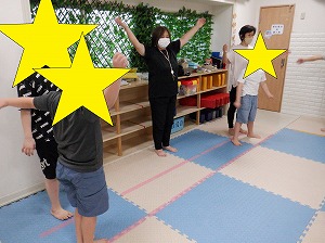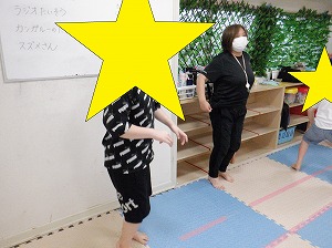 曲をよく聞いて、リズムに合わせながら体操です!!