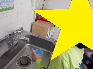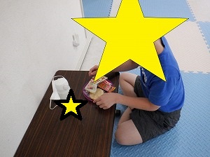 手洗いうがい、宿題の終わった子から、ソーシャルディスタンスを守って、おやつを食べます。
