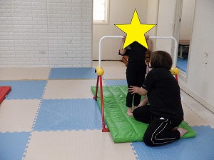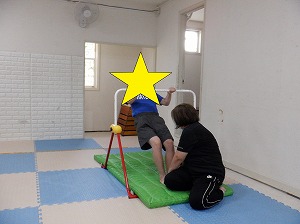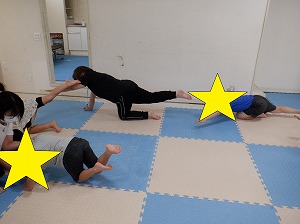 このとき、しっかり上げている手と足をしっかり伸ばして、ふらつかないようにすること。