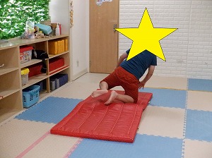 四つん這いになって、右手と左足、次に左手と右足を一定時間、しっかりと上げます。