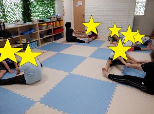しっかり体を伸ばして、怪我をしない体づくりをします!!