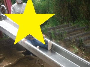 途中、公園で休憩をとって、少し遊具でも遊びました。