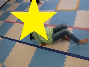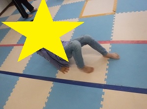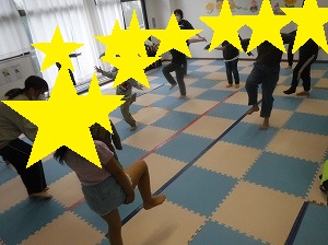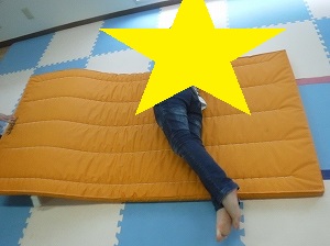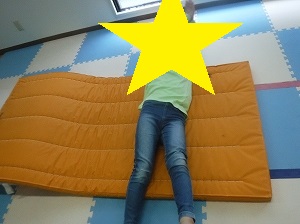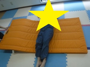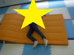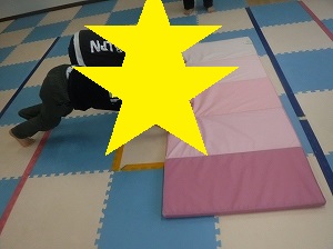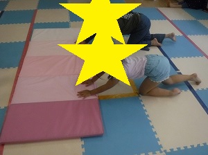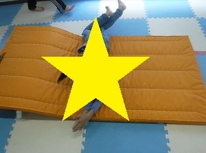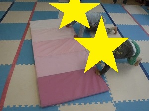 お友だちと協力してマットを押し進みます。力を合わせて真っすぐ進もう!!