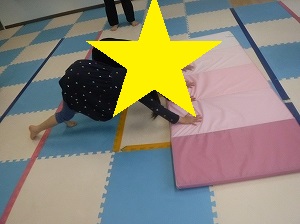 頭を上にして進みますが難しいお友だちは足を上にして行いました。