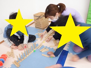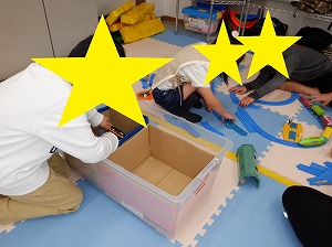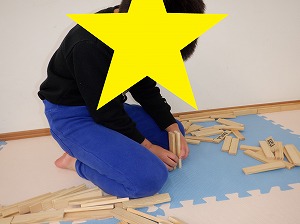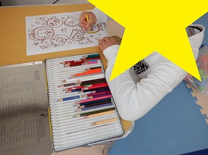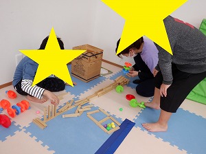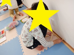 自由遊びの時間では、知育教材のタワーや塗り絵、アスレチックごっこ、お家ごっこなどで楽しみました!