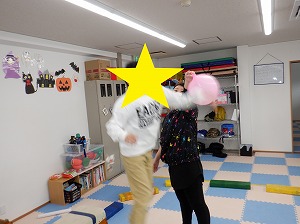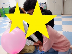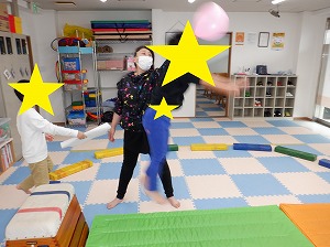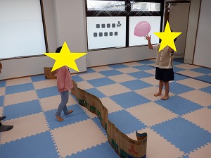 自由遊びではバランスボールや風船バレーなどで遊びました。