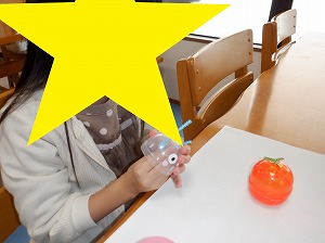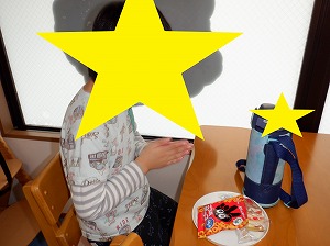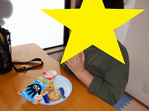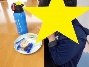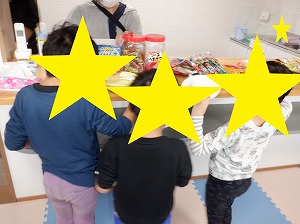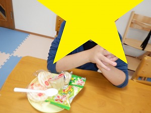 お買い物ごっこで自分の好きなおやつを選べたお友達は、姿勢をただして…「いただきます!」