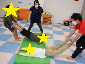 タオルで引っ張りっこで練習した成果を発揮することが出来ました。