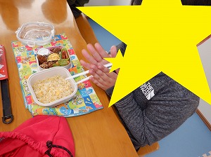 保護者の皆様の作って頂いたお弁当をお腹いっぱい食べて、午後も元気に活動出来るね♪