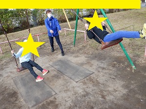 公園に行き、ブランコ、滑り台、虫探しなどを楽しました。