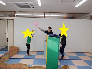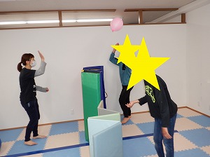 自由遊びの時間では、風船バレーをしたりバランスボールで遊びました❣
