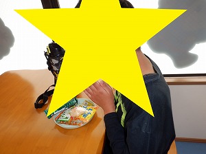 個別で黙食で食べます。「いただきまぁす♡」