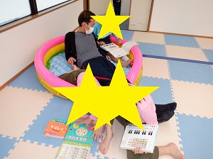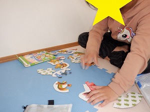 自由遊びの時間では、歌絵本、フープ遊び、ジグソーパズルなどで遊びました。