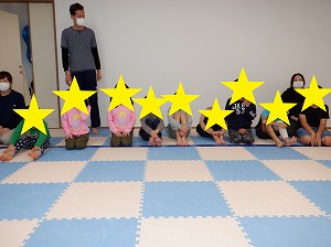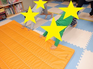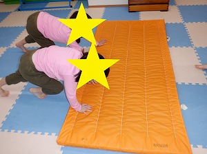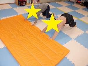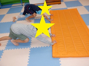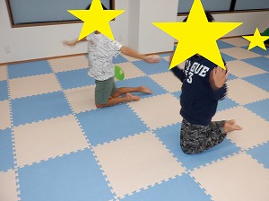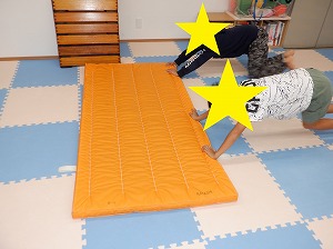 マットで雑巾がけは、二人一組で行いました。お友達と息を合わせてマットを押しましょう。