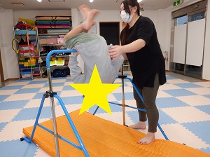 前回りとブランコのどちらかを選んで挑戦してもらいました。