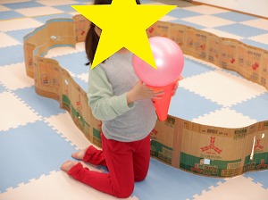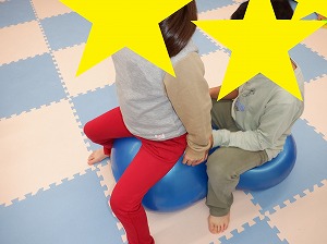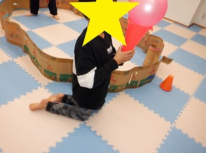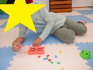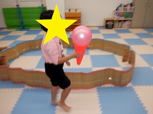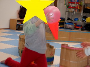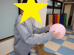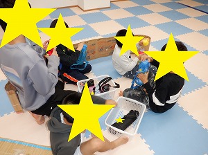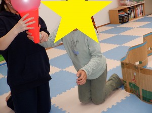 自由遊びでは、ルールを決めてぬいぐるみドッジボールをしたり、バランスボールや風船、魚釣りなどをして楽しみました。