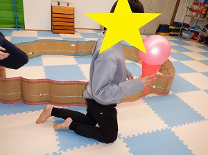 ボールを落とさないように気を付けて前に進みました!