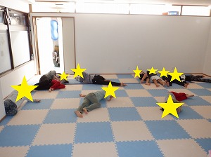 水分補給後は、床に寝ころんでゆっくりと呼吸を整えました。