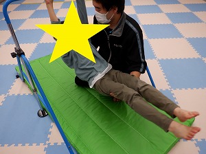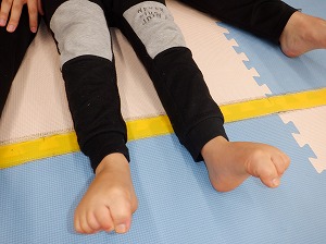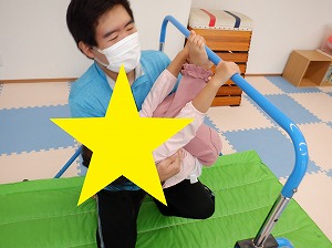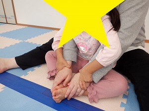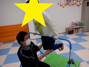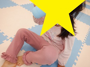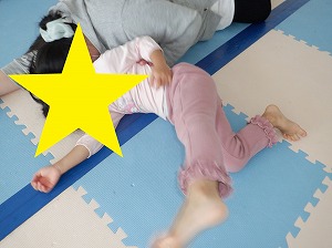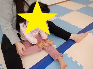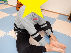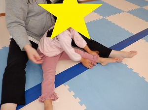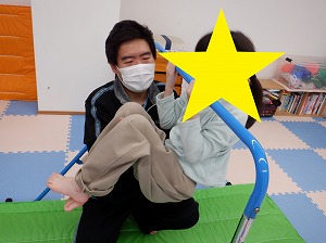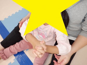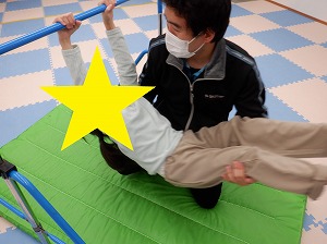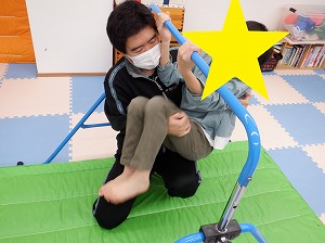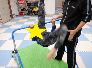 ミノムシさんはフープから手を離さないようにしっかりと握ります。