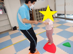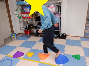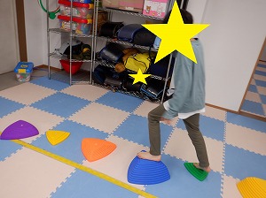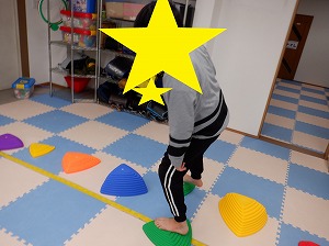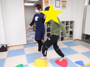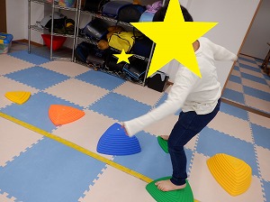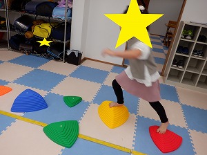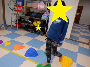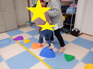 でこぼこ石の上でバランスを取りながらジャンケンをする事も頑張ってくれました。