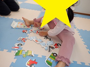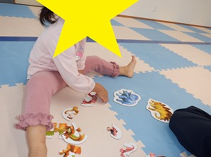 身支度を整えて、手洗いうがい後は、自由遊びの時間は職員と一緒にパズルをして楽しく遊びました!