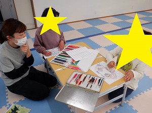 自由遊びの時間では、歌絵本、塗り絵、写し絵、風船やシール貼りなどをして遊びました!