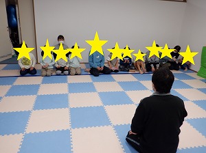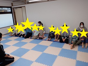 水分補給をしてからゆっくりと呼吸を整え「動から静への切り替え練習」をおこないました。