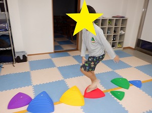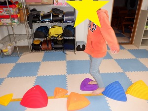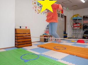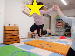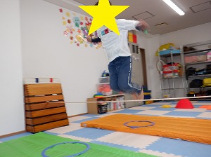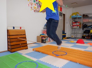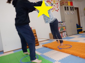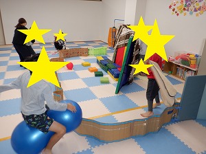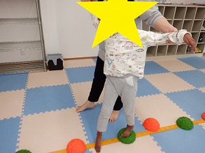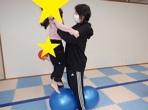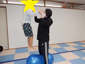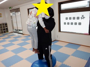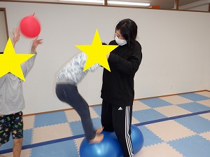 自由遊びの時間では、バランスボールジャンプをして遊びました。