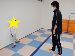 両足を肩幅まで広げることで、バランスが取りやすくなり、逆さの感覚になっても踏ん張る事が出来ます。