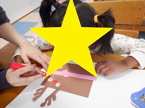 工作では、トナカイさんにサンタさんへのお手紙を届けてもらおうプロジェクトを始動しました。貼ったり、書いたり、色々な作業がありましたが、集中して取り組んでいましたね!