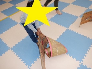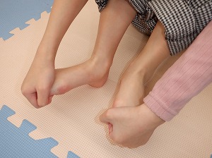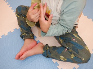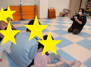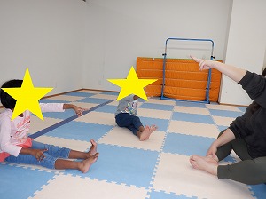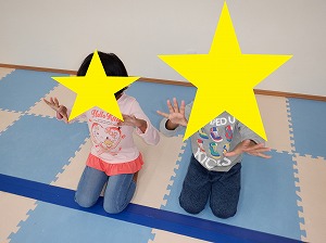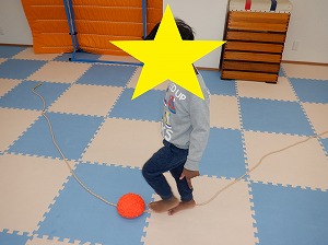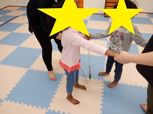 遊びの中でも楽しく跳躍力を養うために両足ジャンプも行いました。棒に引っかからないように高く跳べたね!