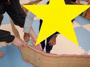 コースづくりでは洗濯ばさみを使って指先トレーニングも行いました。