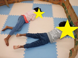 ワニさんの荷物運びではお尻に荷物を乗せて落とさないように慎重に進みます。