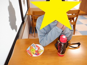 緑のカップを青リンゴに見立てて一生懸命運びました✨