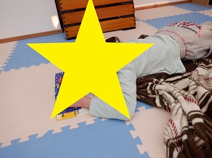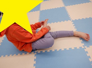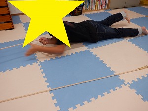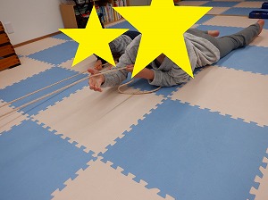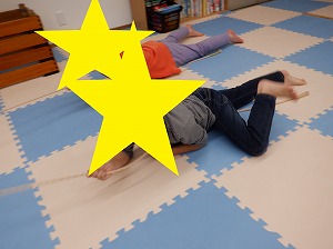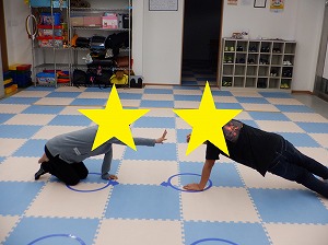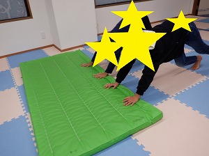 マットで雑巾がけでは、腰を上げてクマさんのポーズでマットを押して行きます。