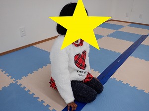 平均台の狭いスペースでもバランスを崩さないように、正面を向いて両腕を大きく広げましょう。