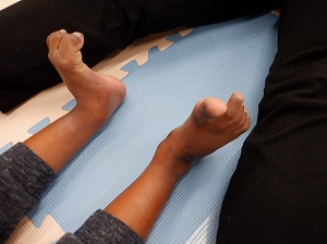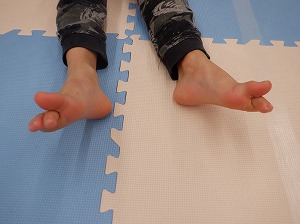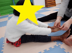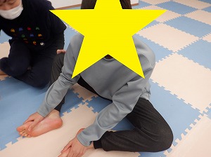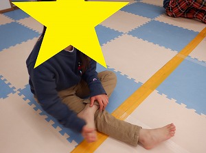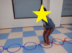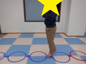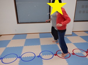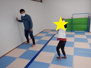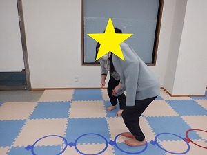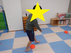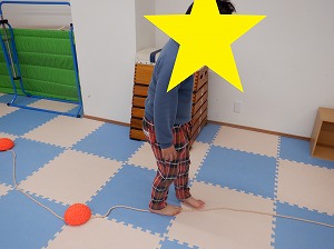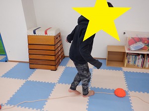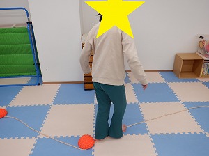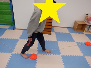 また、ヘビさんに見立てた縄跳びに沿って足の裏や指先に意識して歩いて行きます。