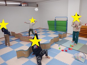 自由遊びの時間では風船バレーやテント遊び、電車ごっこやぬいぐるみ遊びなどをして遊びました!
