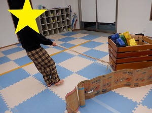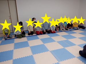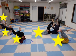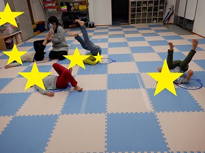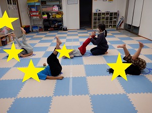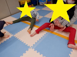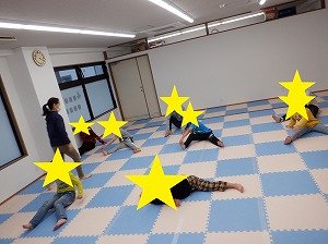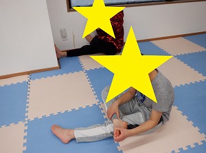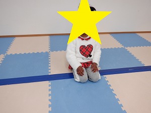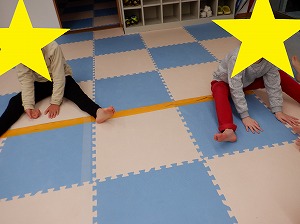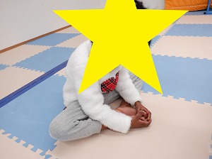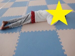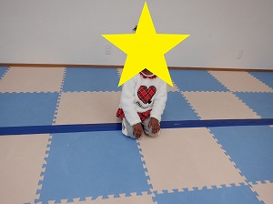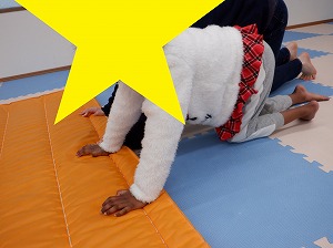 マットで雑巾がけでは、犬さん歩きでマットを押していきます。